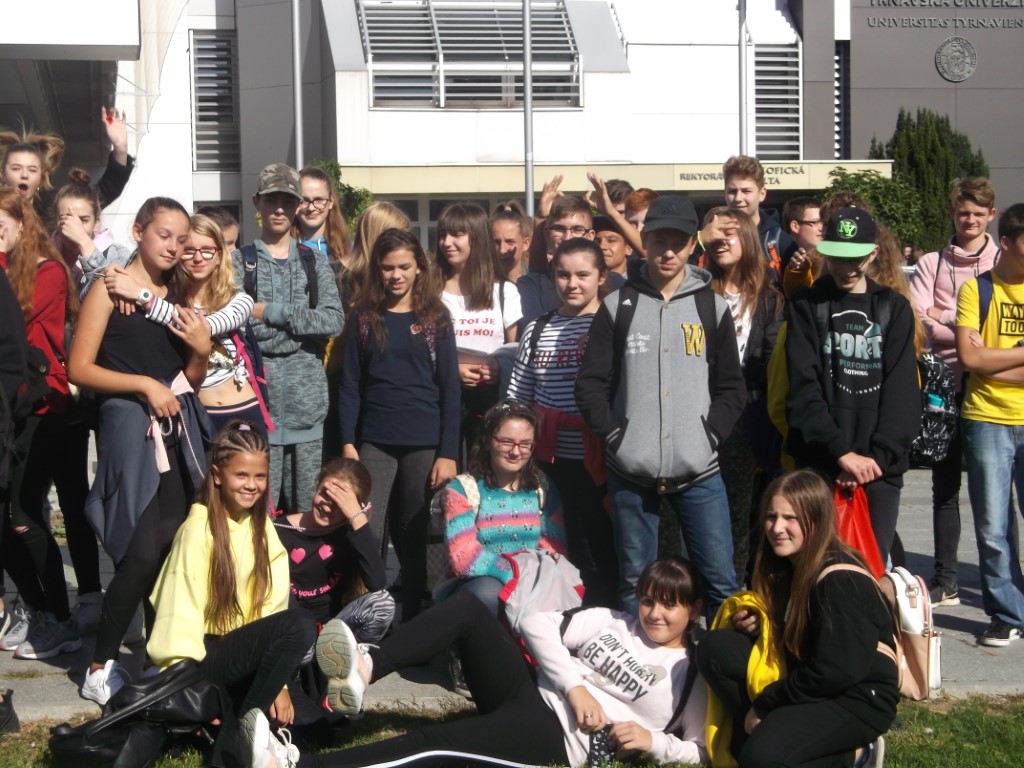 Tento raz sme zamierili do Trnavy, kde sa na Filozofickej fakulte Trnavskej Univerzity konala „Ulička jazykov“. Pri niekoľkých stánkoch si mohli žiaci zasúťažiť a preveriť svoje vedomosti z cudzieho jazyka a tiež pamäť. Po tejto akcii sme zamierili do centra Trnavy na Trojičné námestie, kde nám p. učiteľka Petrovová urobila miniprednášku o histórii Trnavy a tiež sme si prezreli mestské hradby, ktoré kedysi slúžili na obranu pred nepriateľom.