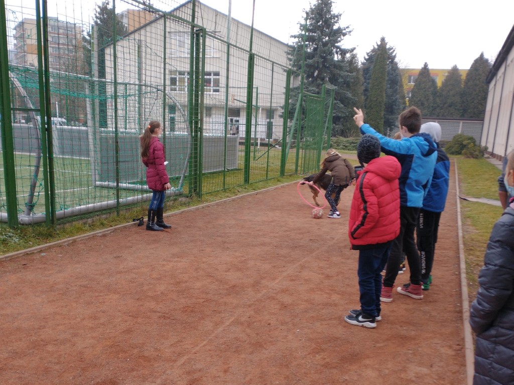 Všetkých milo prekvapila práve Vaneska. Svoj projekt o jej miláčikovi - belgickom ovčiakovi menom Bony poňala netradične. Na hodinu biológie priviedla na školské ihrisko svojho 4-nohého kamaráta, ktorého úplne sama trénuje už 6 a pol roka. Na úvod ho zoznámila so svojimi spolužiakmi. Deti mali možnosť pohladkať psíka a nadviazať s ním priateľský kontakt..