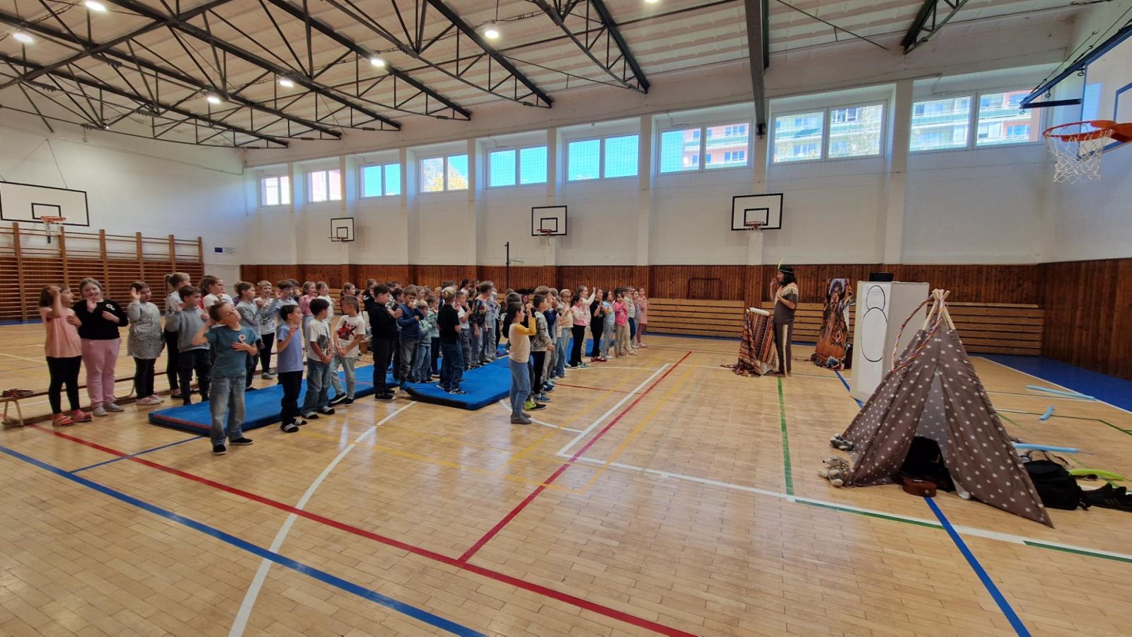 V pondelok. 13 októbra 2025 sa žiaci 1. až 4. ročníka našej školy zúčastnili veselého divadelného predstavenia s názvom Indiánska skúška, ktoré k nám prišlo v podaní Divadla Kakadu.