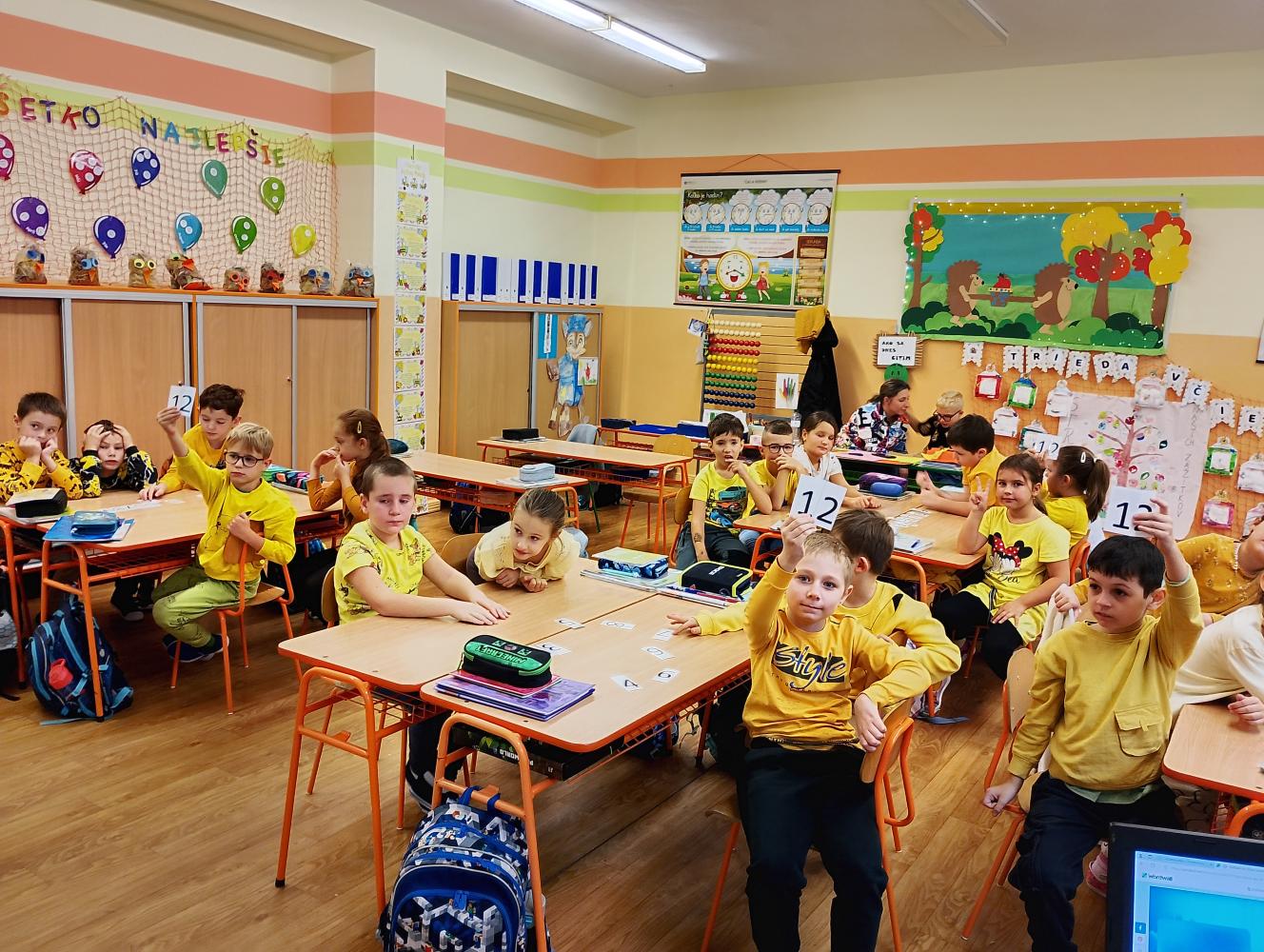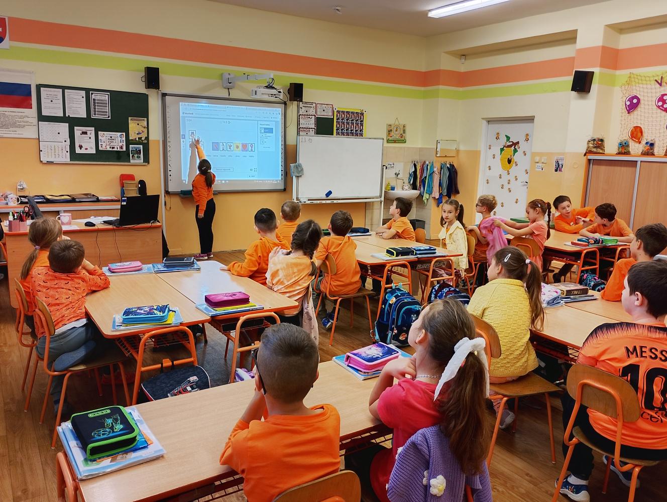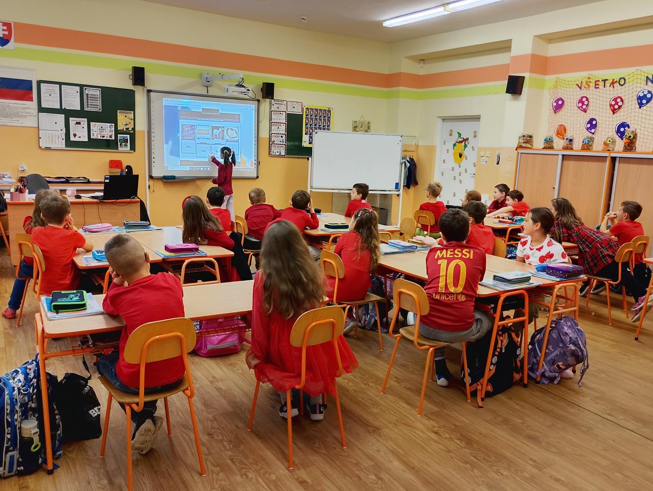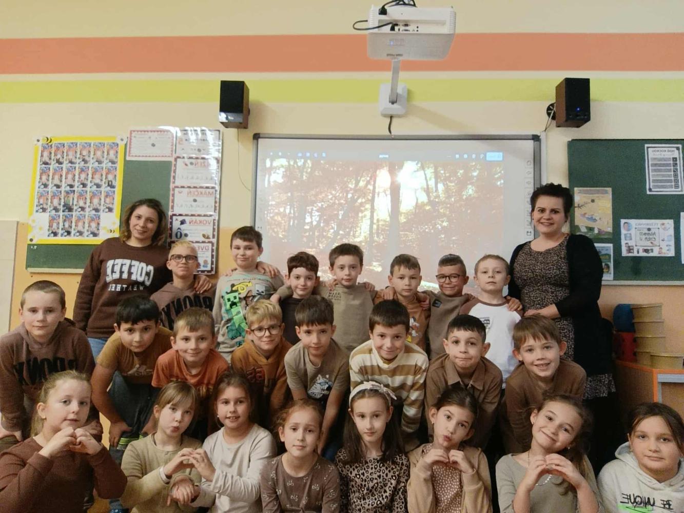 Celá naša škola sa zapojila do krásnej akcie Týždeň jesenných farieb. Ani 2. B nezostala pozadu! Každý deň sme sa obliekli do inej farby, ktorá symbolizovala jesennú náladu – pondelok zelený, utorok žltý, streda červená, štvrtok oranžový a piatok hnedý. Okrem farebného oblečenia sme sa aj učili netradične a tvorivo – pracovali sme v skupinách, kreslili, spievali a objavovali krásy jesene. V deň červenej farby sme dokonca natočili veselé video s piesňou „Červené jabĺčko“, ktoré sa všetkým veľmi páčilo. Na pamiatku sme si každý deň urobili spoločnú fotku, takže nám zostane krásna spomienka na farebný jesenný týždeň plný radosti, tvorivosti a spolupráce.