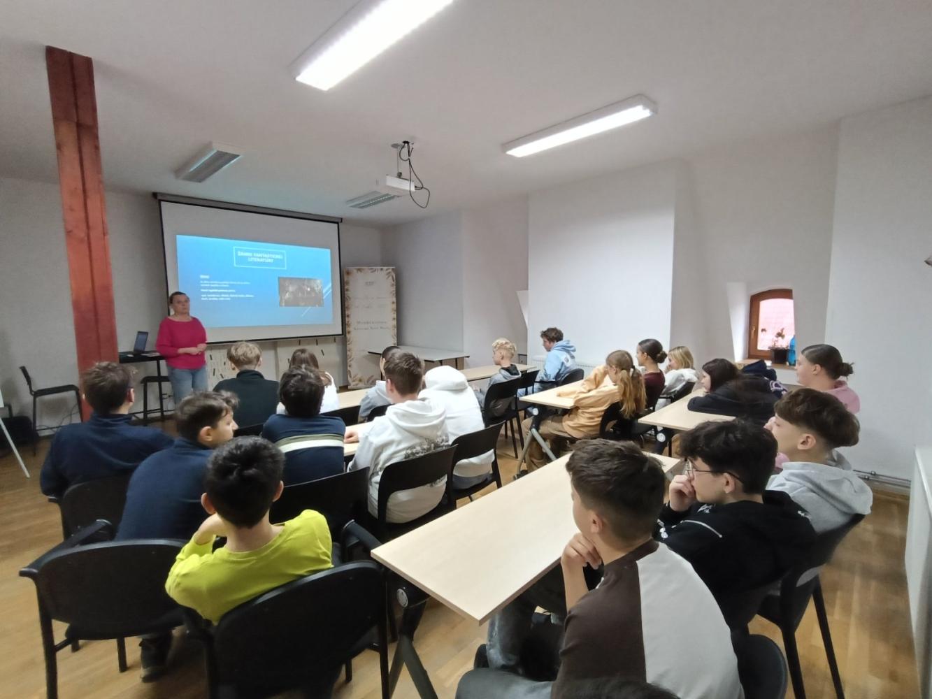 V stredu 11. 2. sa trieda 7. A vybrala do našej mestskej knižnice, kde nás čakal program Fantastická literatúra. Ponorili sme sa do sveta, kde je možné (takmer) všetko – spoznali sme podžánre ako utópia, science fiction, fantasy či horor. Teória však nezostala sama. Podľa opisu z knihy sme si vyskúšali vytvoriť identikit ET mimozemšťana – kreslili sme bytosť, ktorú sme nikdy nevideli, no vedeli sme ju „prečítať“ z textu. Fantázia pracovala na plné obrátky. Na záver prišlo malé, ale dôležité rituálne finále: privoňali sme ku knihám v regáloch a hľadali tú pravú na nadchádzajúce čitateľské dielničky. Už o chvíľu nás privíta marec – mesiac knihy a my vieme, že budeme pripravení. D. Kubíková