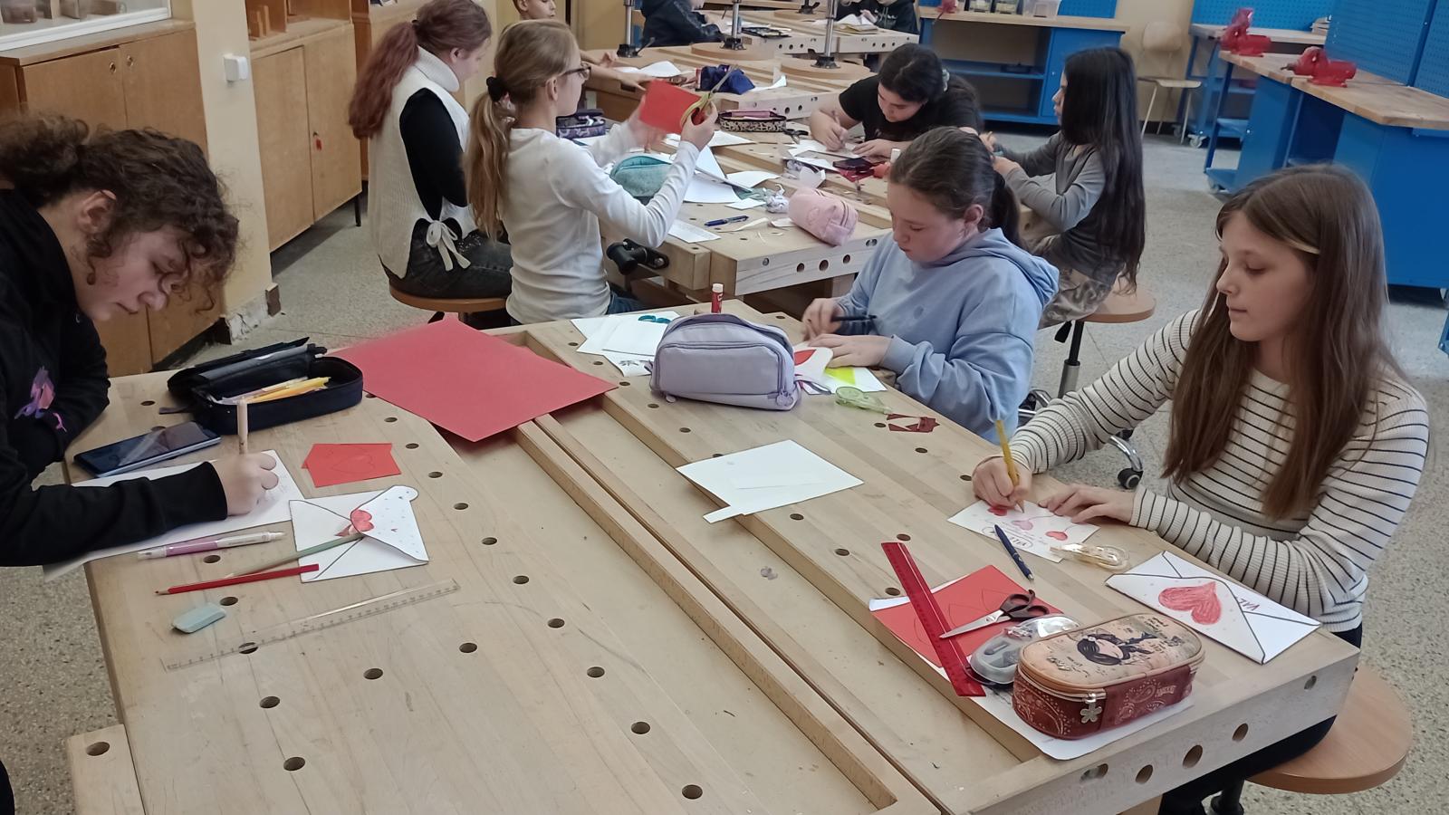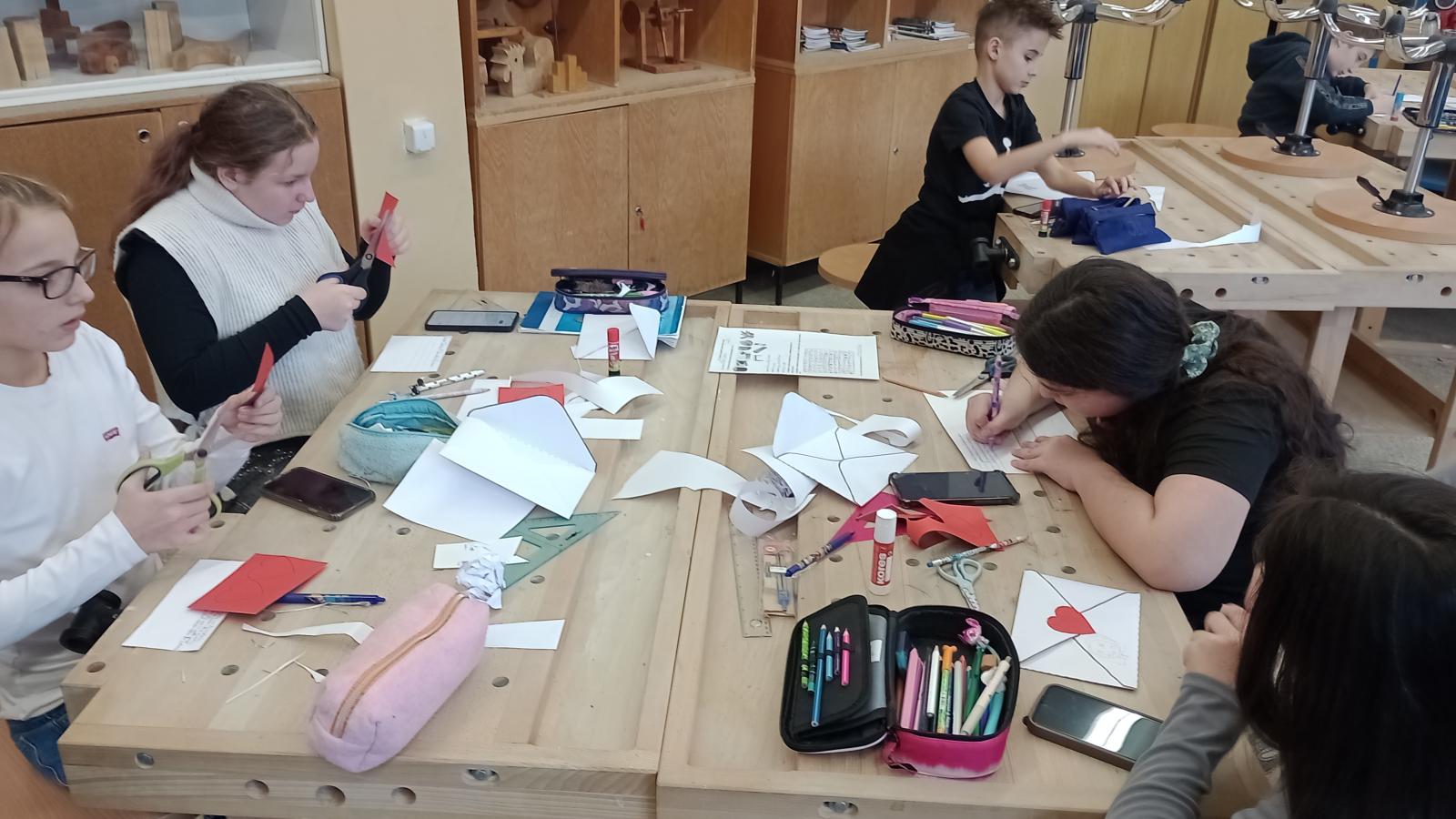 Na hodine techniky sa žiaci 5. ročníka zdokonaľovali vo výrobe valentínskych obálok pre svojich najbližších, ktoré im môžu odovzdať počas blížiaceho sa sviatku sv. Valentína. Pri ich výrobe mohli naplno využiť svoju tvorivosť a odkázať rodičom, starým rodičom, spolužiakom či kamarátom, že im na nich záleží. V každej obálke ich čaká milé prekvapenie, ktoré si deti pre nich s láskou pripravili.
