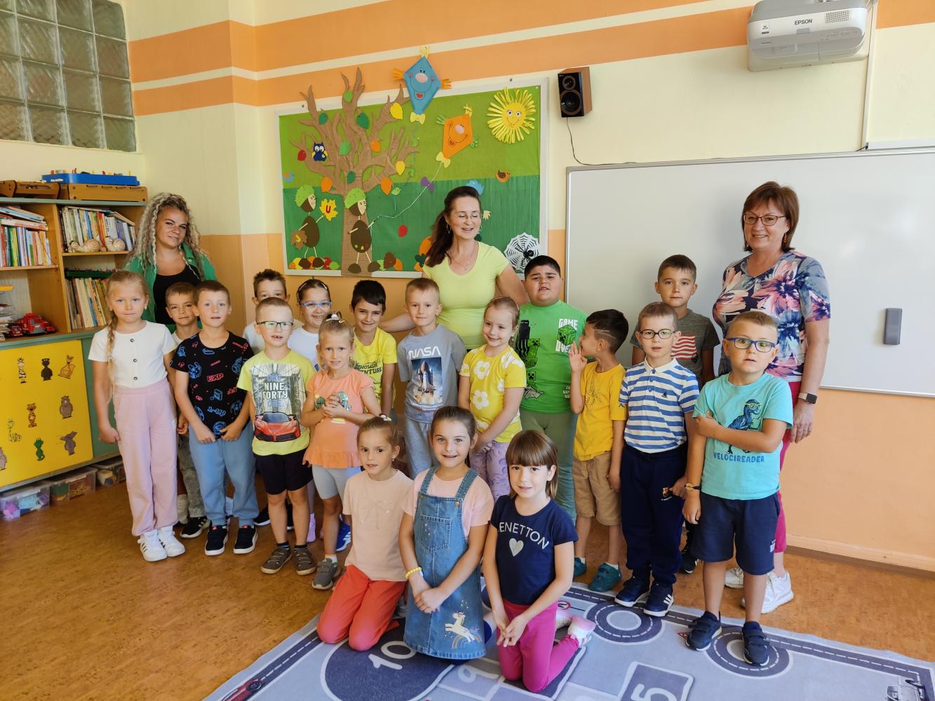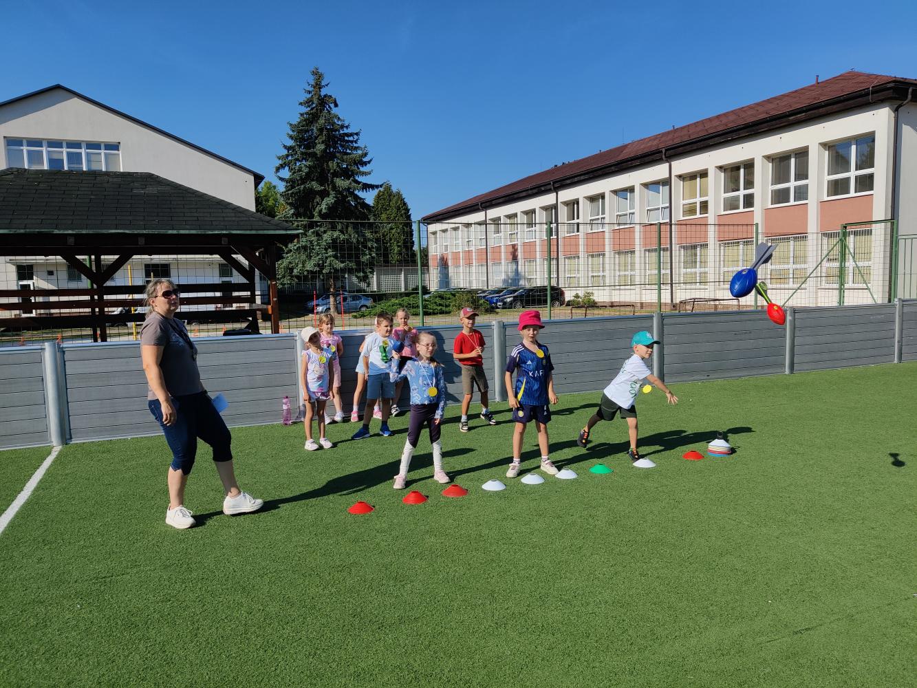 V utorok, 24.júna, sa aj žiaci 5.A dočkali svojho triedneho výletu. Vybrali sme sa vlakom do Trenčína, do mesta Matúša Čáka. Rovno zo železničnej stanice nás pani sprievodkyňa zaviedla do prístavu, kde si žiaci najskôr na suchu natrénovali pádlovanie, aby to vzápätí predviedli priamo na vode. Plavili sme sa po mŕtvom ramene rieky Váh na dračej lodi. Deti pádlovali do rytmu bubnu a skandovali pokrik „kon-čí ško-la“, ale akosi sa im poplietli jazyky a zrazu skandovali „ho-rí ško-la“. Po návrate na breh si každý vyskúšal streľbu lukom na terč a potom sme sa ponáhľali na hrad. Vychádzka to bola pre mnohých náročná. Cestou do kopca cez lesopark niektorým dochádzali sily. Potom ešte zvládli niekoľko desiatok schodov do Matúšovej veže, odkiaľ sa im naskytol nádherný výhľad na celý Trenčín a okolie. Všetkých zaujala aj mučiareň a potom aj dom miestneho kata s rôznymi mučiacimi nástrojmi. Z hradu sme zišli po schodoch zo 17.storočia priamo na námestie, kde sme si pozreli studňu s miestnym vodníkom Valentínom a potom sa všetci rozbehli po okolitých cukrárňach, zmrzlinárňach a pizzeriách. Občerstvení a oddýchnutí sme sa vrátili na železničnú stanicu, nasadli na vlak a vrátili sa domov. Tento deň ubehol veľmi rýchlo, ale bol plný zážitkov, na ktoré budeme ešte dlho spomínať.